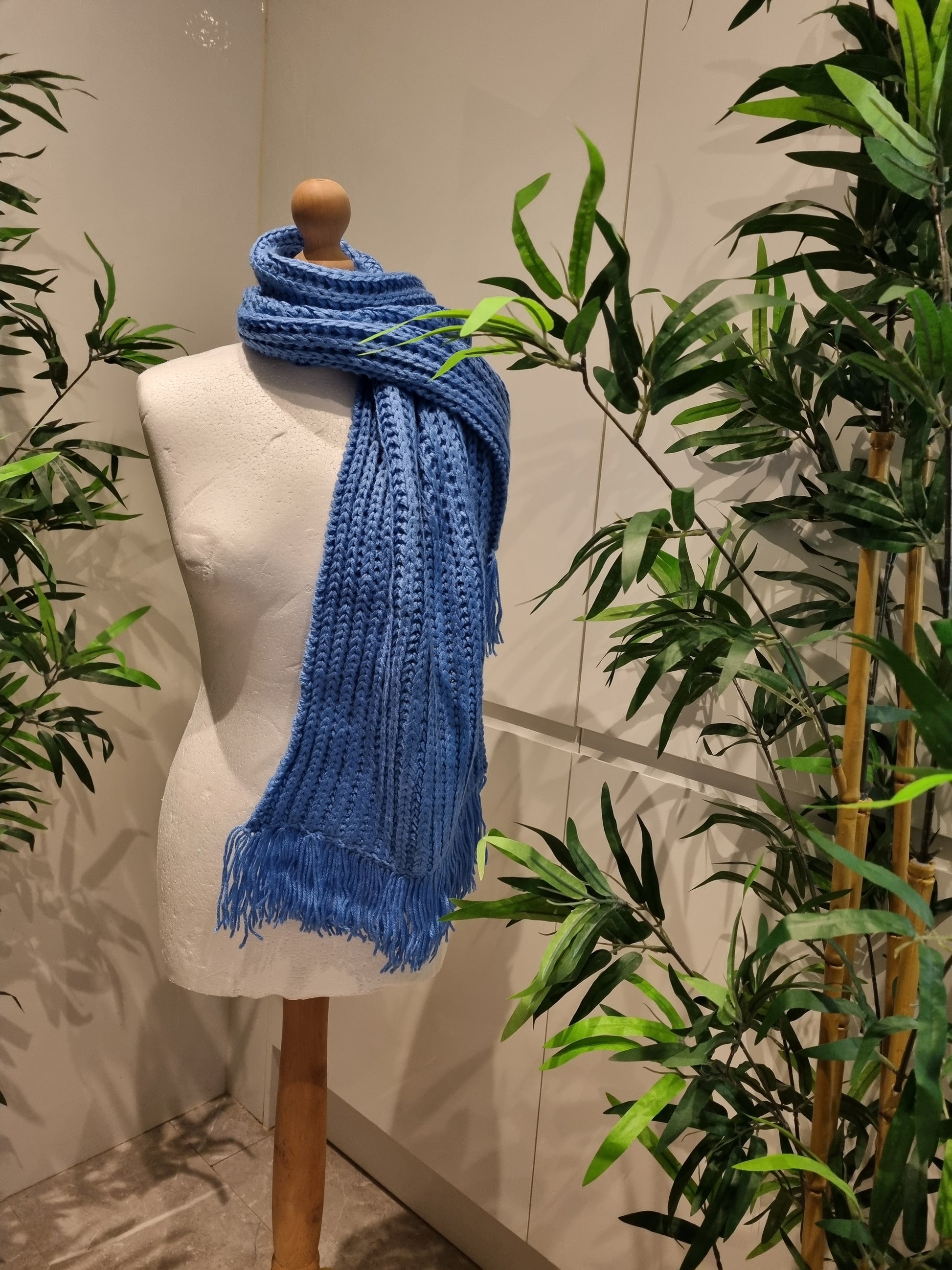 Classic, cozy, and effortlessly stylish, the Blue Knitted Scarf is a timeless accessory for any wardrobe. Handcrafted with a soft, textured knit, this scarf offers warmth and comfort while maintaining a lightweight feel. The rich blue hue makes it a versatile piece, perfect for layering over casual or dressy outfits. Finished with delicate fringe detailing, it adds a touch of elegance and movement.