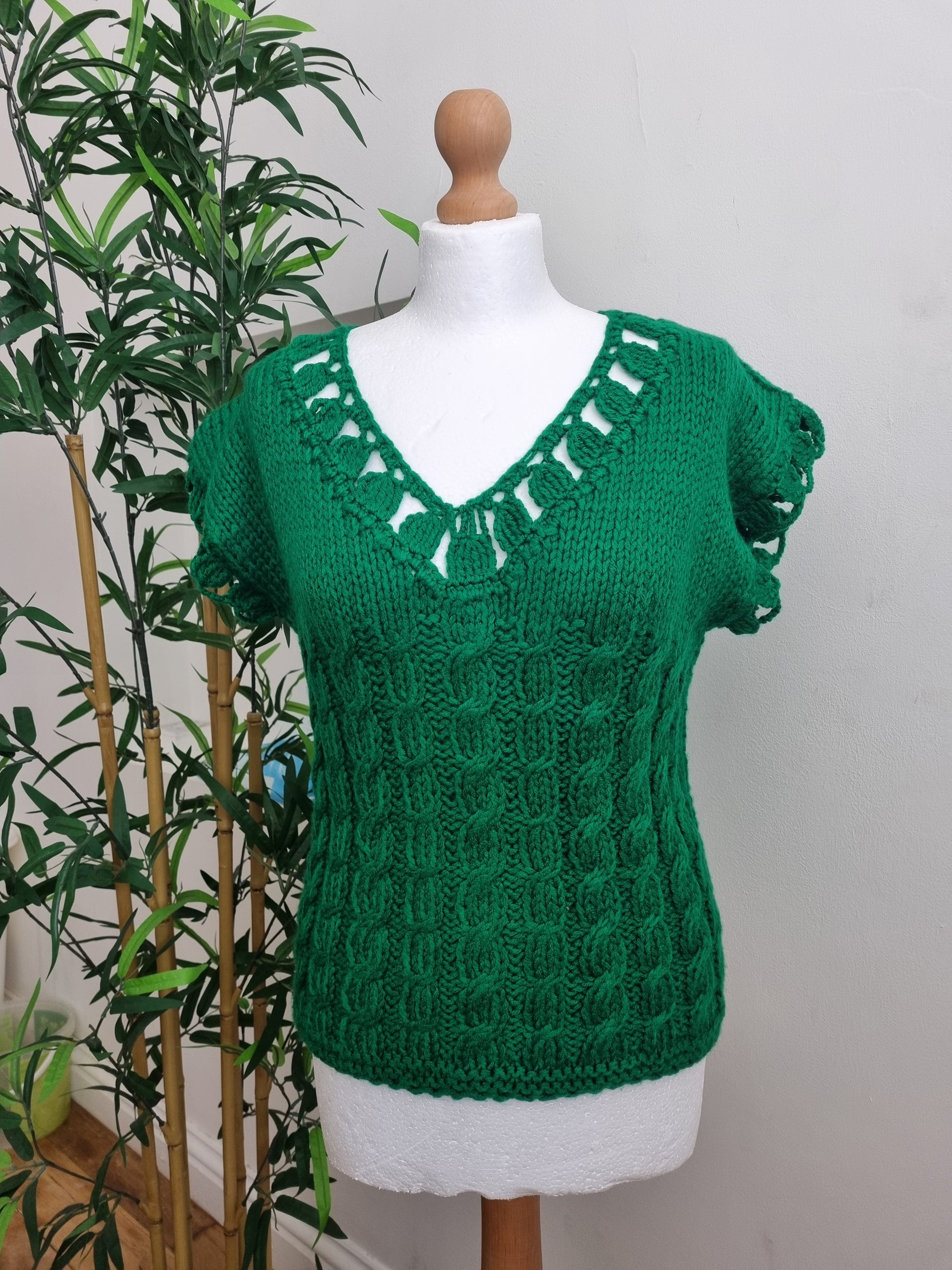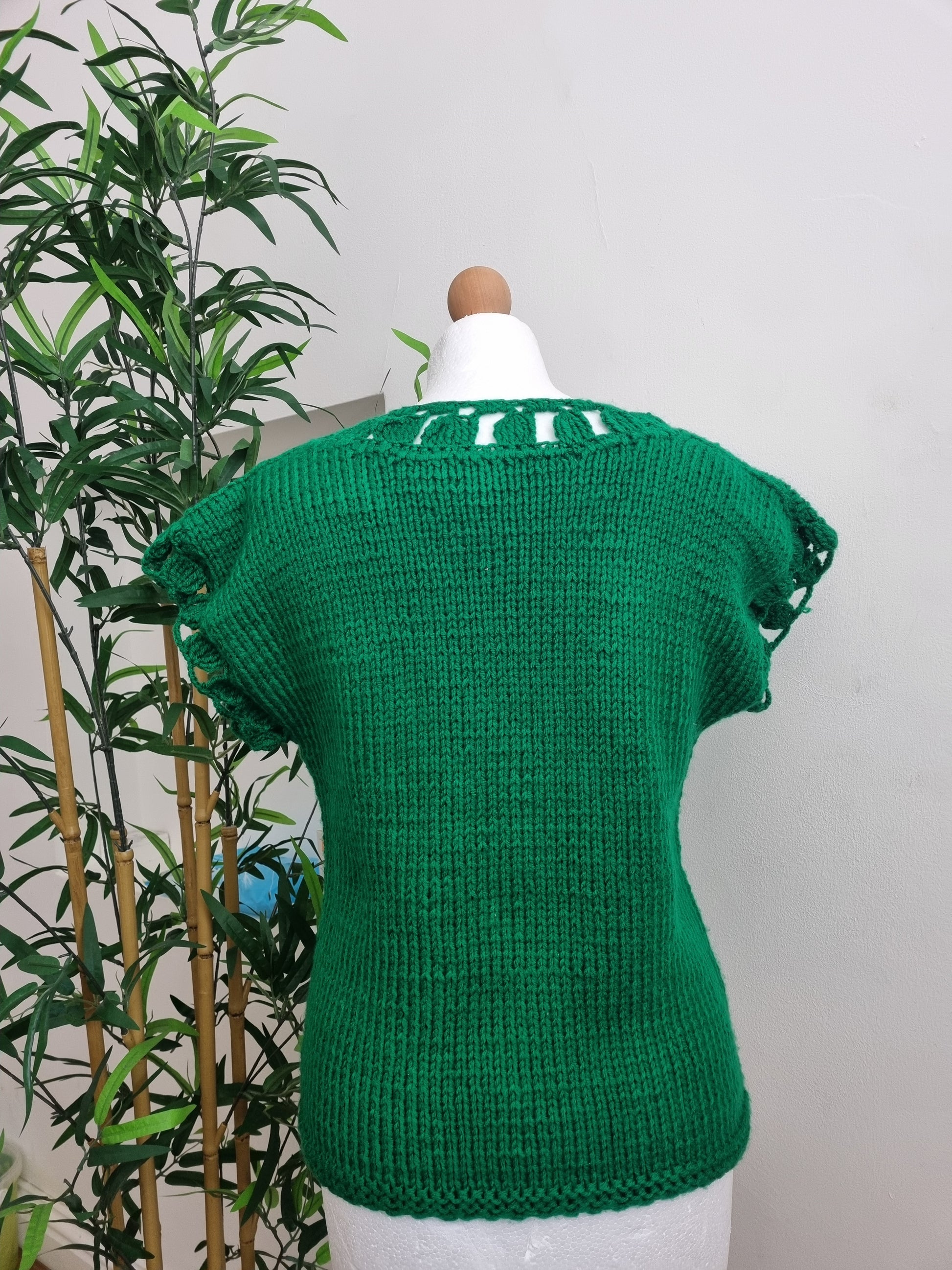 This handmade crochet green top is a perfect choice for any woman who values comfort and style. Knit with attention to detail, it offers coziness and freshness throughout the day. It pairs effortlessly with different types of outfits and is suitable for various occasions, from casual to more formal events.