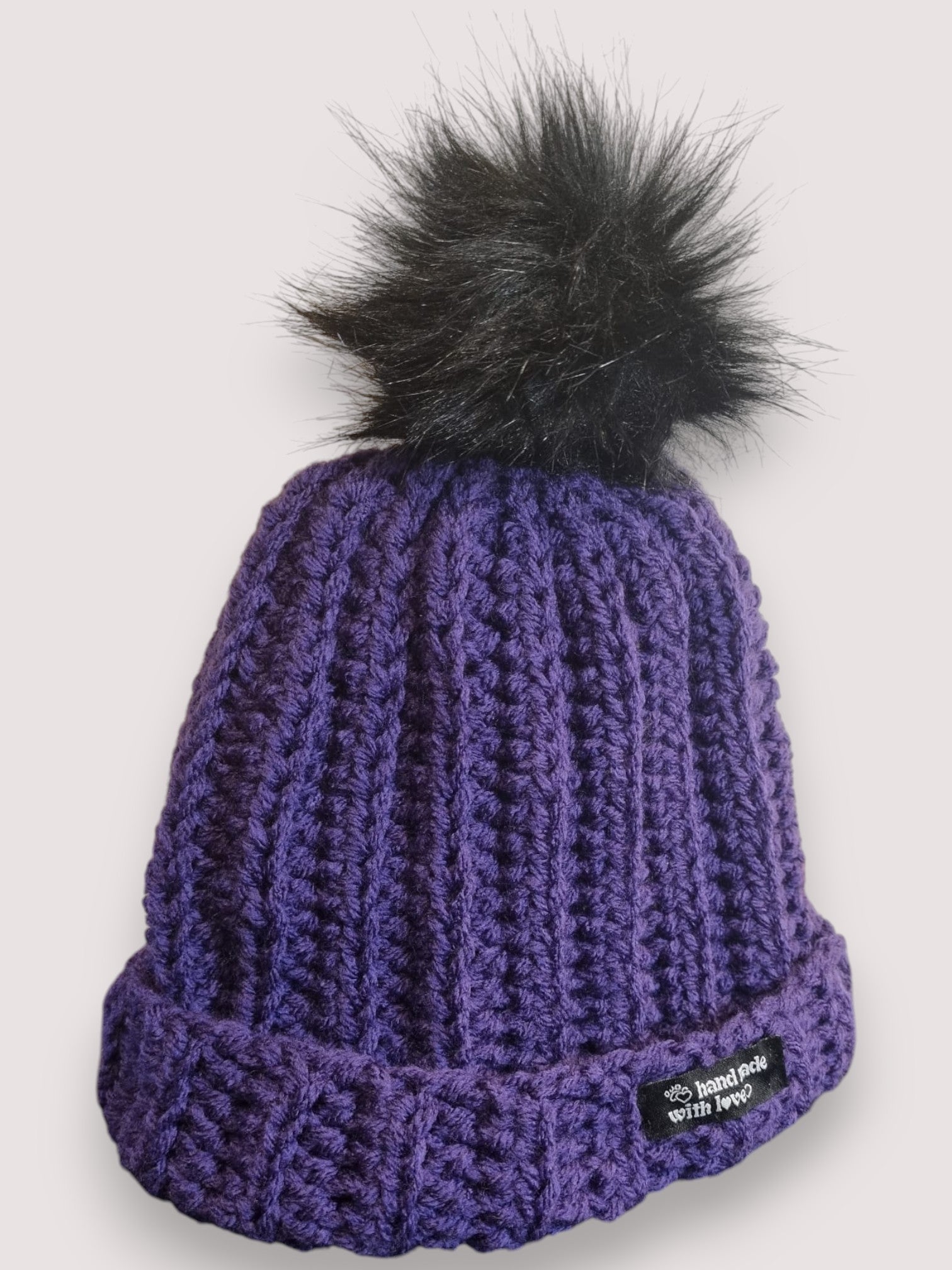 - Colour: Deep Amethyst Purple with Black Pom Pom