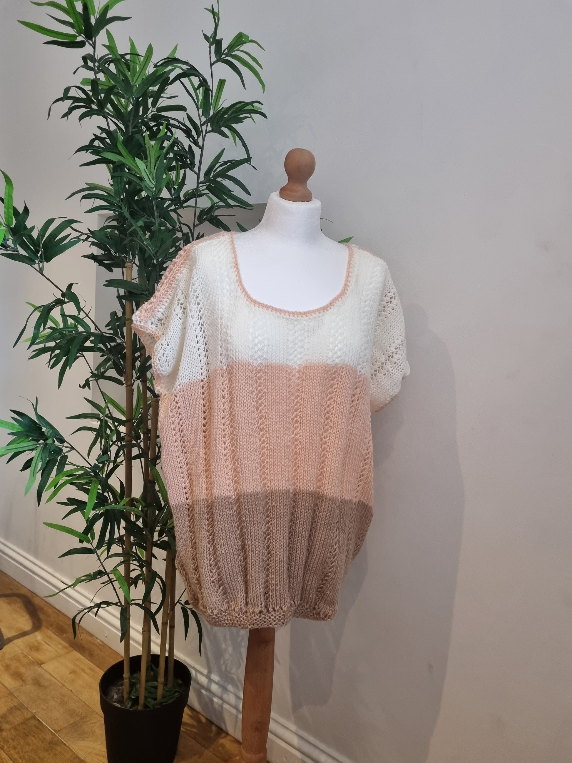 This handmade tri-colour cream women's top is a beautiful blend of comfort, versatility, and refined style. Lovingly crafted with high-quality yarn, it features a harmonious combination of soft cream tones, giving it a subtle yet distinctive character. The top drapes effortlessly, offering a relaxed fit that flatters the figure while ensuring all-day comfort.