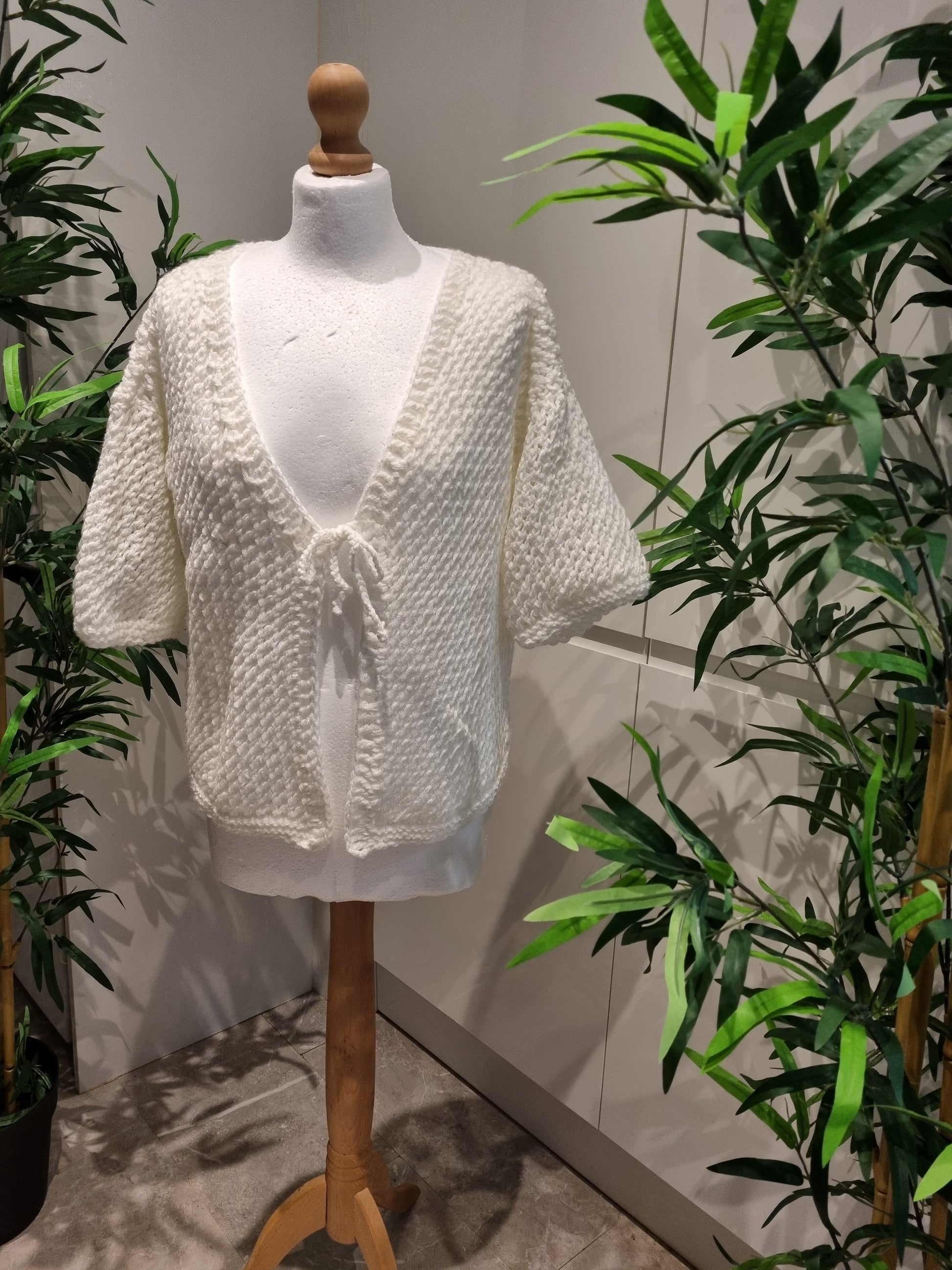 Elegant, timeless, and effortlessly chic, the White Knitted Cardigan is a must-have piece for those who love sophisticated simplicity. Handcrafted with a soft, textured knit, this cardigan features a flattering open-front design with a delicate tie closure, making it perfect for layering. The relaxed fit and airy knit structure ensure comfort while maintaining a stylish silhouette.